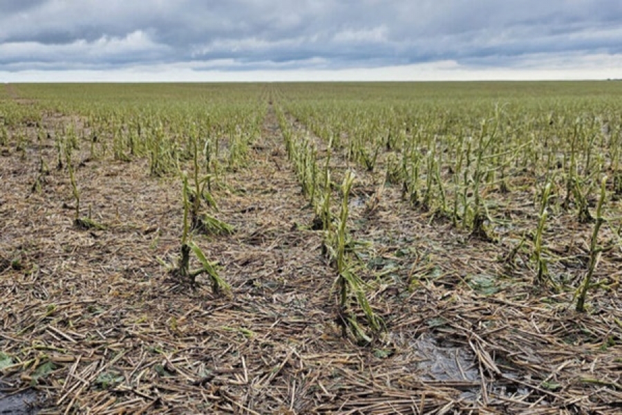 “Pocas veces se ha visto un daño tan irreversible de cultivos, especialmente de soja, maíz y sorgo, los tres cultivos de verano de mayor área en el país fuera del arroz, que en este episodio del temporal no se vio afectado”, resaltó el secretario de Estado y acotó que le llamó la atención “el daño en los cultivos, porque habitualmente se ven afectadas una parte de la chacra o una franja, pero ver extensiones importantes de cientos de hectáreas dañadas de punta a punta es inaudito”. Varias chacras del departamento de Paysandú y el norte de Río Negro se vieron afectadas por el fuerte viento y granizo caído durante la tarde y noche del pasado viernes, en algunos casos con pérdidas totales. A eso se suma que fueron derribadas decenas de columnas de UTE, por lo que varias zonas permanecieron durante horas sin energía eléctrica.