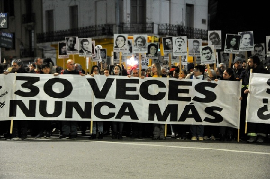 La manifestación en la capital, en reclamo de verdad y justicia por los desaparecidos durante la dictadura (1973-1985), partió de la intersección de Jackson y Rivera, donde se encuentra el Memorial a los Detenidos Desaparecidos en América Latina, y se trasladó en silencio hasta la plaza Libertad.