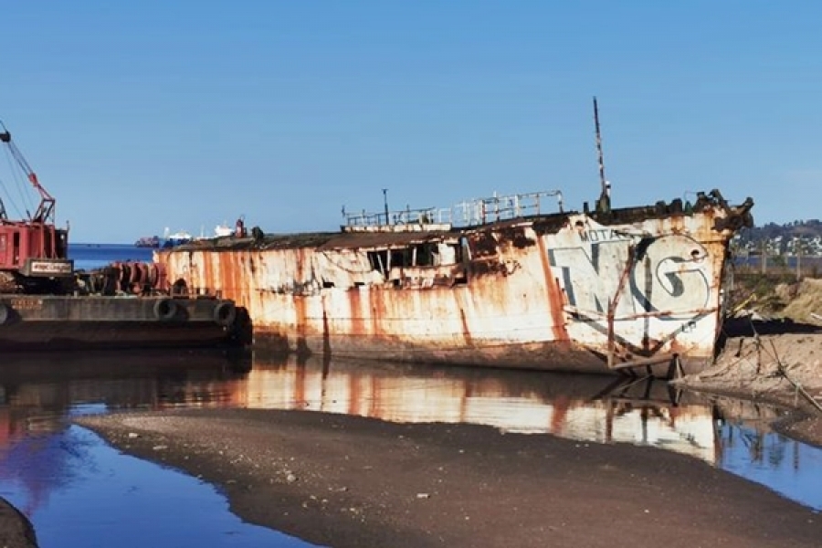 El fuego comenzó en el interior del barco herrumbrado, donde había material inflamable.