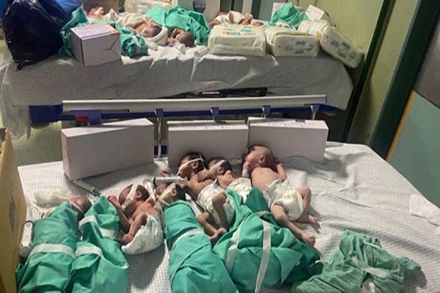 Los dos hospitales más grandes de la Franja de Gaza, el Al-Shifa y el Al-Quds, han suspendido sus operaciones debido al colapso del sistema de salud que enfrenta el enclave palestino por el bloqueo y los incesantes bombardeos que está llevando adelante Israel. Al menos seis bebés prematuros y otros nueve pacientes han fallecido en el hospital Al-Shifa debido a la escasez de electricidad. Los últimos trabajadores que quedan en el hospital se están viendo obligados a recurrir a medidas desesperadas. Imágenes que circulan en internet muestran a bebés prematuros que han sido sacados de sus incubadoras y colocados juntos en una cama para mantenerlos al calor. El personal médico afirma que las fuerzas armadas israelíes ingresaron a los hospitales, dispararon contra los pacientes y obligaron a cientos de personas a salir a las calles. Los médicos y funcionarios del Ministerio de Salud palestino pidieron a los organismos internacionales permitir la evacuación segura y el tratamiento de los pacientes.